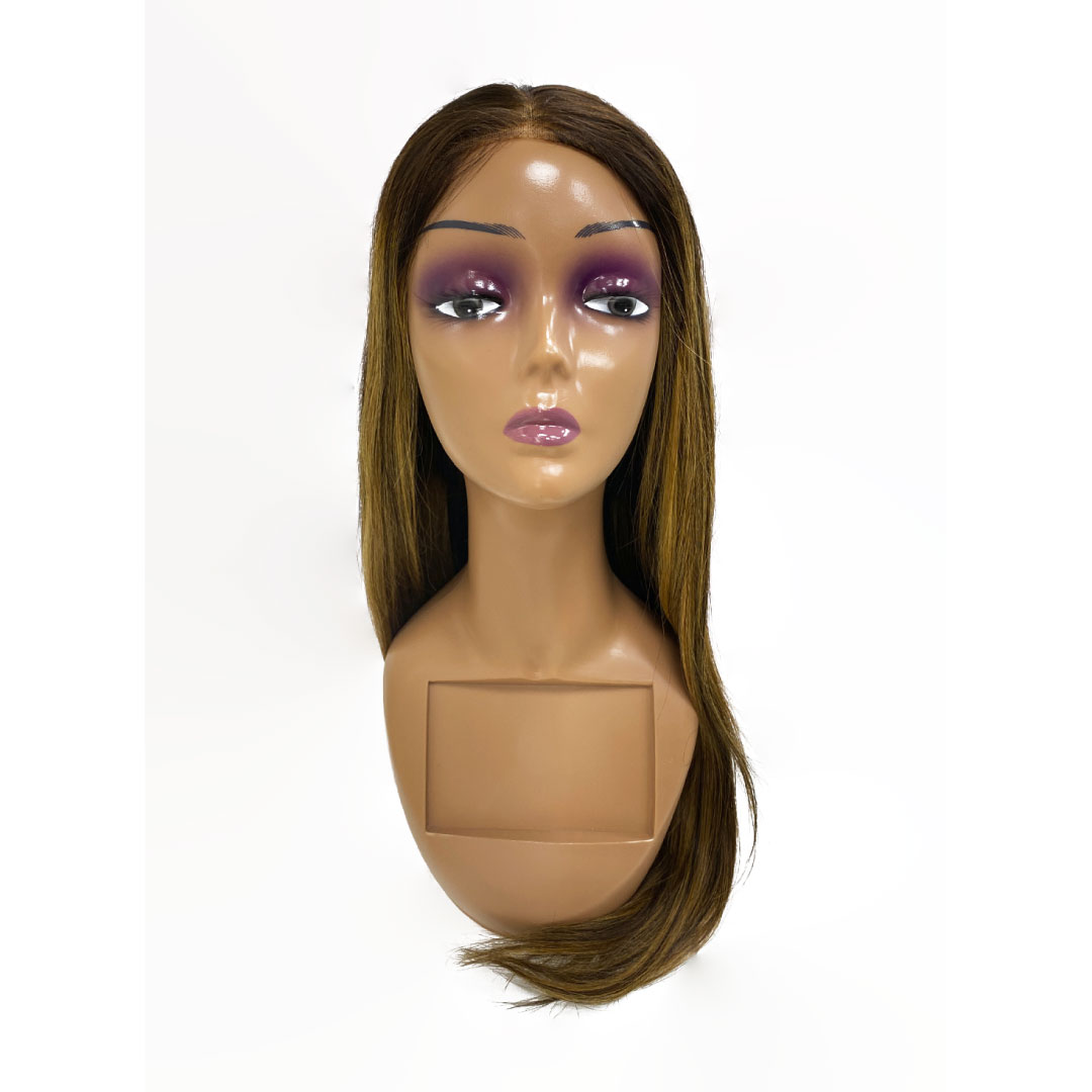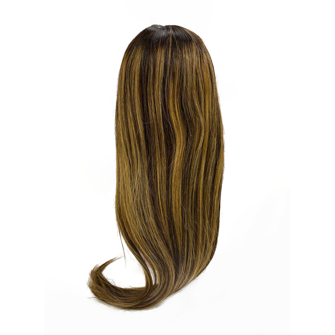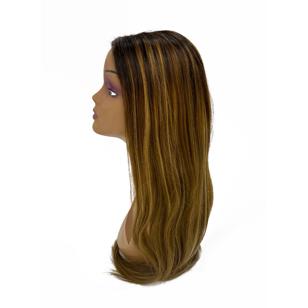 Peluca 100% Natural Lace Front Castaño Oscuro con Mechas Rubias 55cm Lacia