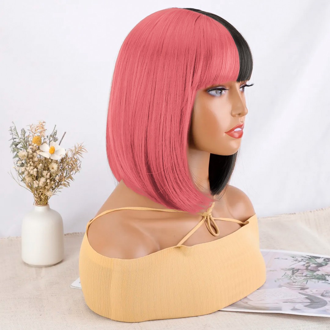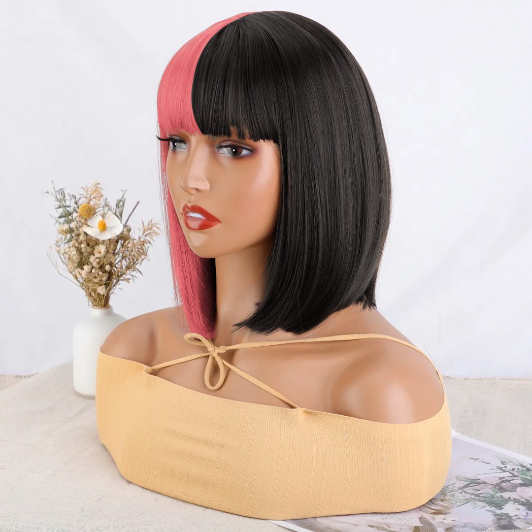 Peluca sintética: adopta material de alta calidad, suave y lisa. Fibra de alta temperatura resistente al calor, Apto para planchitas y secadores.